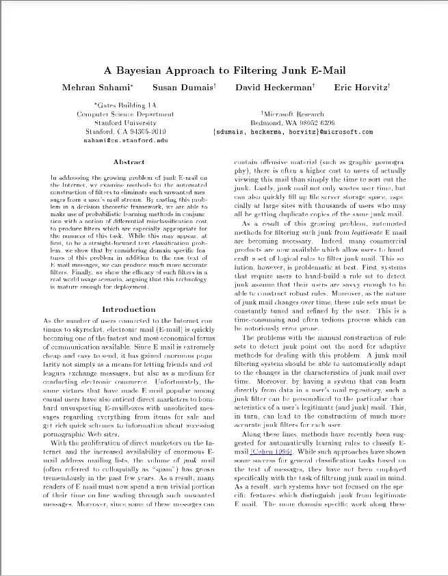 For me, this exploration of Applied Bayesian Networks started with a 1998 paper from Microsoft Research titled "A Bayesian Approach to Filtering Junk E-Mail". You can read the PDF by clicking on the image below: