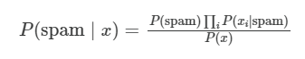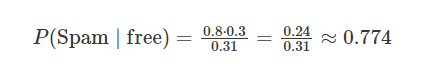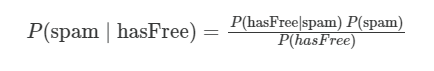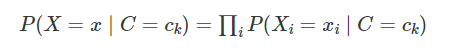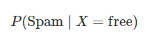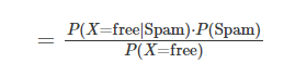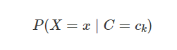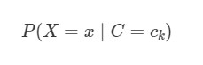 (2) In the right-hand side, in the numerator, that is proportional to the classification, or “strengthening the thesis” is the following. Essentially, it says how prevalent finding feature x is in the given class ck in the historical data available to us. In the spam classification task - this is the factor that says P(has_free | is_spam) from the observation dataset.