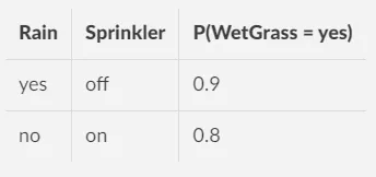 For example, if you know whether it rained and whether the sprinkler was on, then: