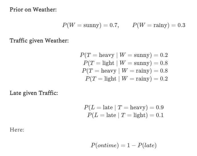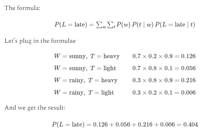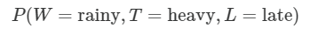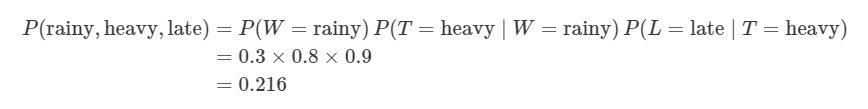 So there’s a 21.6% chance it is rainy, traffic is heavy, and you are late.