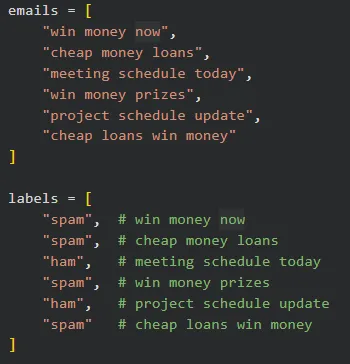 X = Features (“email content contains the word FREE”, “has an email attachment”, etc.)