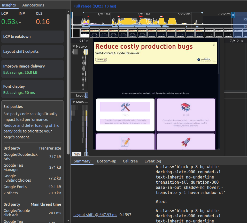 Optimizing for Core Web Vitals is not a one-time task; it is a continuous process of monitoring and refinement. To stay ahead, we implemented an automation system using the PageSpeed Insights API to consistently track performance across all key pages of FreeDevTools. These improvements don't just result in better scores—they create a faster, more reliable experience that keeps users engaged.